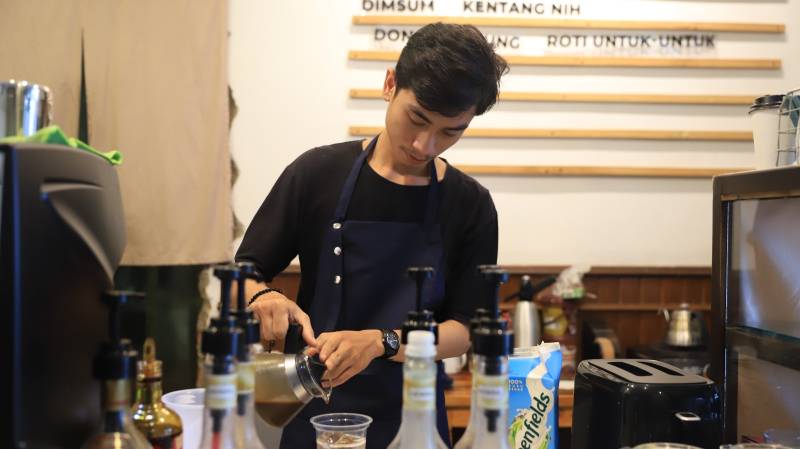 "Pembeda dari coffee shop lain di kedai kami ini setiap hari Jumat kami ada Jumat Berkah, di mana pelanggan bisa mendapatkan paket makanan gratis. Untuk minuman, range harga di sini mulai dari 5.000 rupiah hingga 25.000 rupiah. Sedangkan untuk makanan, mulai dari 10.000 rupiah hingga 30.000 rupiah," lanjutnya.
