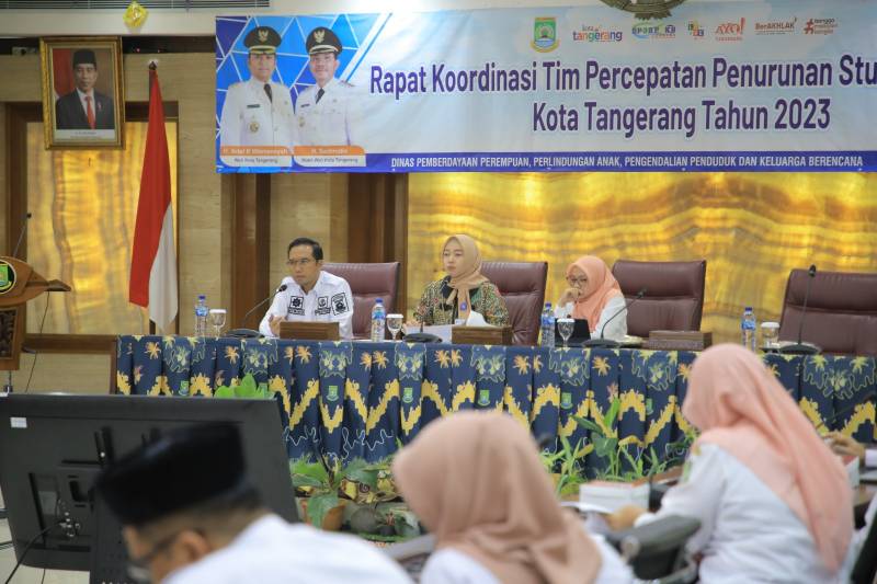 Pemerintah Kota (Pemkot) Tangerang melalui DP3AP2KB menggelar Rapat Koordinasi Tim Percepatan Penurunan Stunting (TPPS) guna membahas terkait strategi menekan angka stunting di Kota Tangerang, bertempat di Ruang Akhlakul Karimah, Pusat Pemerintahan, Rabu (21/6/2023)