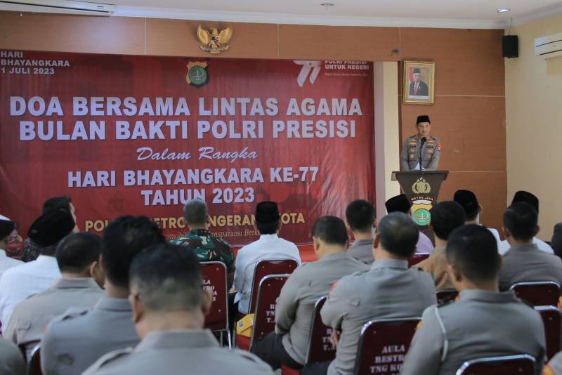 Wakil Wali Kota Tangerang, H. Sachrudin, hadiri acara Doa Bersama Lintas Agama dalam rangka peringatan Hari Bhayangkara ke-77 tahun 2023 yang digelar oleh Polres Metro Tangerang Kota.