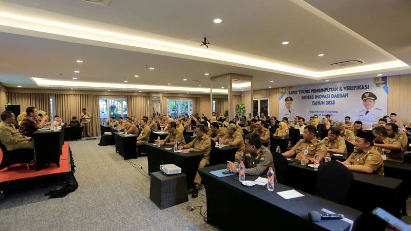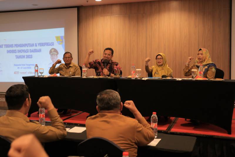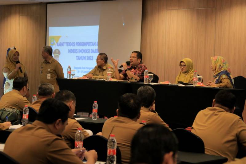 Wali Kota Tangerang, H. Arief R. Wismansyah, didampingi Sekretaris Daerah, Herman Suwarman, hadir membuka kegiatan Rapat Teknis Penginputan dan Verifikasi Indeks Inovasi Daerah Tahun 2023 yang diselenggarakan oleh Badan Perencanaan Pembangunan Daerah (Bappeda) Kota Tangerang bertempat di Hotel Vega, Kabupaten Tangerang, Senin (26/6).