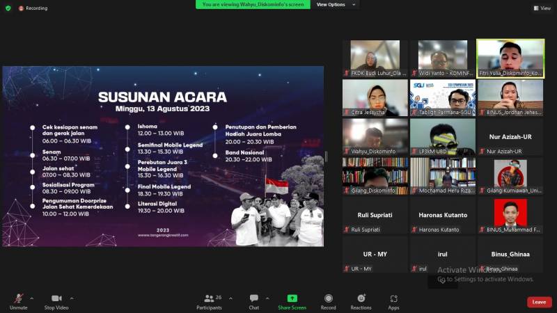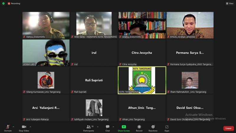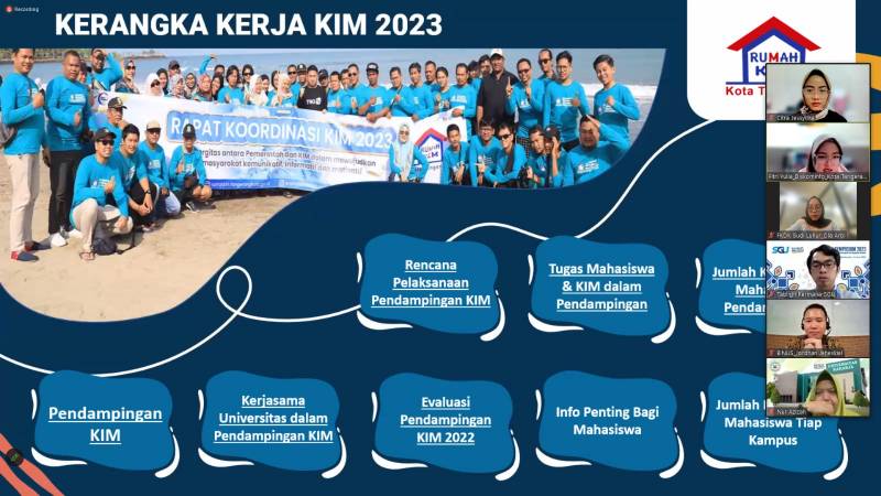 Guna pengembangan kapasitas Kelompok Informasi Masyarakat (KIM), Pemerintah Kota (Pemkot) Tangerang melalui Dinas Komunikasi dan Informatika (Kominfo) menggelar rapat pembahasan awal dalam rangka persiapan program pendampingan KIM 2023 bersama dengan 7 (tujuh) universitas di Kota Tangerang secara daring pada, Selasa (27/6/2023).