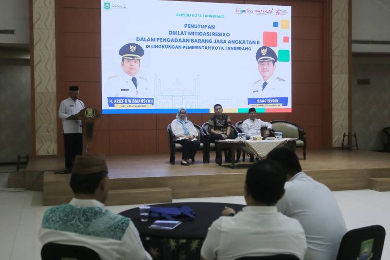 Sekretaris Daerah Kota Tangerang, H. Herman Suwarman, hadir dan menutup Kegiatan Diklat Mitigasi Risiko Dalam Pengadaan Barang Jasa Angkatan II yang diikuti oleh 40 Pejabat Pengadaan Barang dan Jasa di Lingkungan Pemerintah Kota Tangerang, bertempat di Ruang Al-Amanah, Pusat Pemerintahan Kota Tangerang, Jumat (7/7).