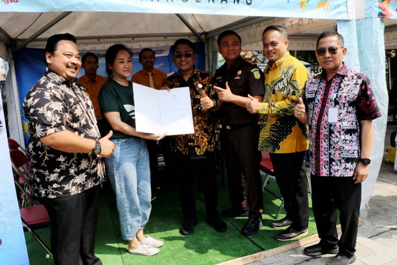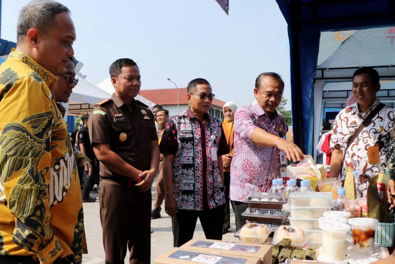 Sekretaris Daerah Kota Tangerang, Herman Suwarman, didampingi para camat se-Kota Tangerang turut mengenalkan produk-produk unggulan UMKM dari setiap kecamatan pada acara "Kejaksaan Fair: Bazar UMKM dan Pelayanan Masyarakat" dalam rangka peringatan Hari Bhakti Adhyaksa ke-63 di Stadion Benteng Reborn, Kamis (13/07).