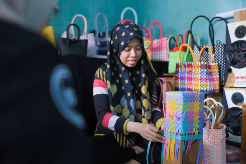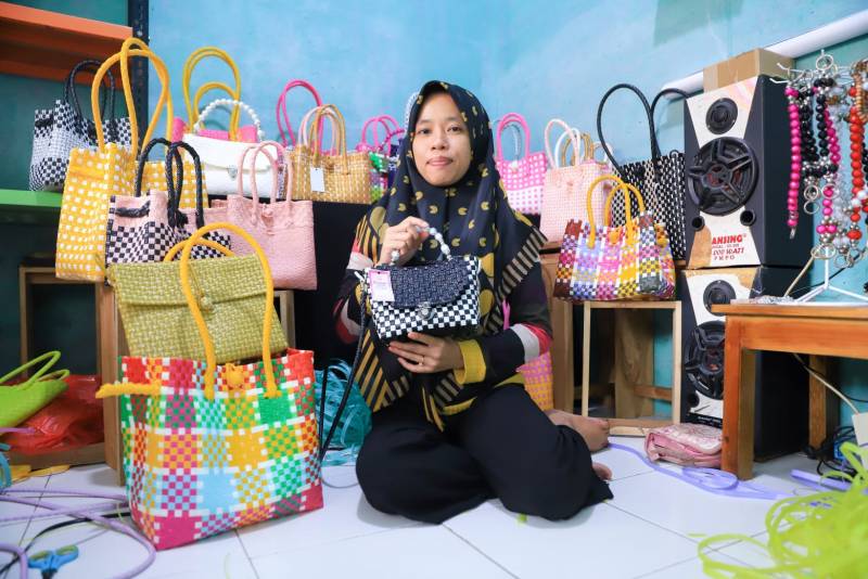 "Awalnya saya tawarkan ke tetangga, keluarga, dan teman-teman dari sekolah anak saya. Alhamdulillah mendapatkan respon yang sangat baik. Bahkan selalu pesan ke saya model tas lainnya. Sejak itulah saya mulai menekuni usaha tas anyaman dari plastik jali ini," ujarnya.