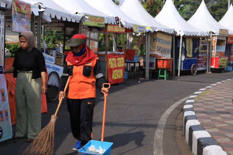 Dengan itu, para petugas kebersihan ditugaskan untuk sigap dan terus berkeliling ke seluruh titik festival, untuk membersihkan atau memastikan kebersihan disetiap sudut Masjid Al A'zhom atau sekitar Taman Elektrik, Puspem Kota Tangerang.