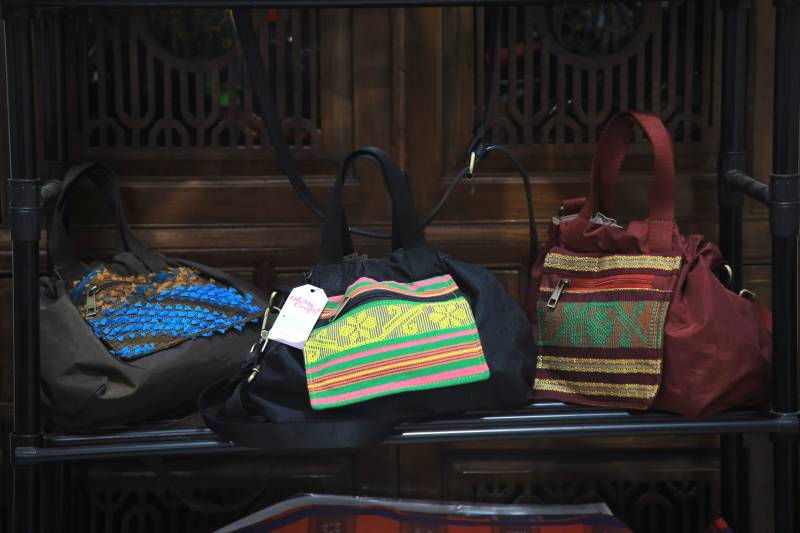 “Produk yang dibuat Oh My Craft semuanya terbuat dari kulit asli yang berpaduan dengan kain batik-tenun, mulai dari tas dibandrol 400 ribu-1,5 juta rupiah, sampai topi, dompet, dan lanyard yang dibandrol 100 ribuan, ada juga penjepit kabel dan pembatas buku yang dibandrol 20 ribuan,” ujar Owner Oh My Craft, Dilla Yudi Astari.