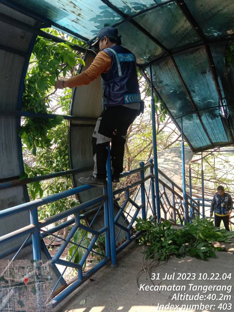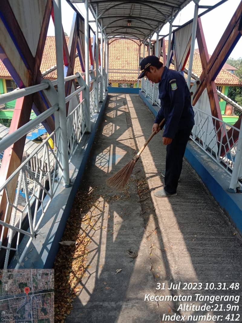Terus menjaga kenyamanan para pejalan kaki, khususnya pengguna Jalur Penyebrangan Orang (JPO). Pemerintah Kota (Pemkot) Tangerang melalui Dinas Perhubungan (Dishub) rutin menurunkan petugas untuk melaksanakan perawatan JPO secara rutin di sejumlah titik lokasi yang ada. Kali ini, petugas dikerahkan diseluruh JPO di lingkungan Kecamatan Tangerang, Selasa (1/8/23).