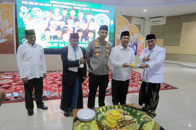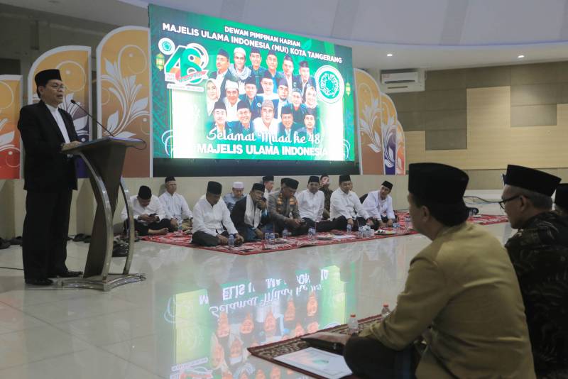 Wali Kota Tangerang, Arief R. Wismansyah saat menghadiri Istighosah dan Doa Bersama dalam rangka milad ke-48 Majelis Ulama Indonesia (MUI), di Gedung MUI Kota Tangerang, Selasa (1/8), menyampaikan bahwa keberadaan majelis ulama terus mampu mengayomi, membimbing dan mengarahkan umat untuk menjaga Kota Tangerang agar senantiasa dirahmati oleh Allah SWT.