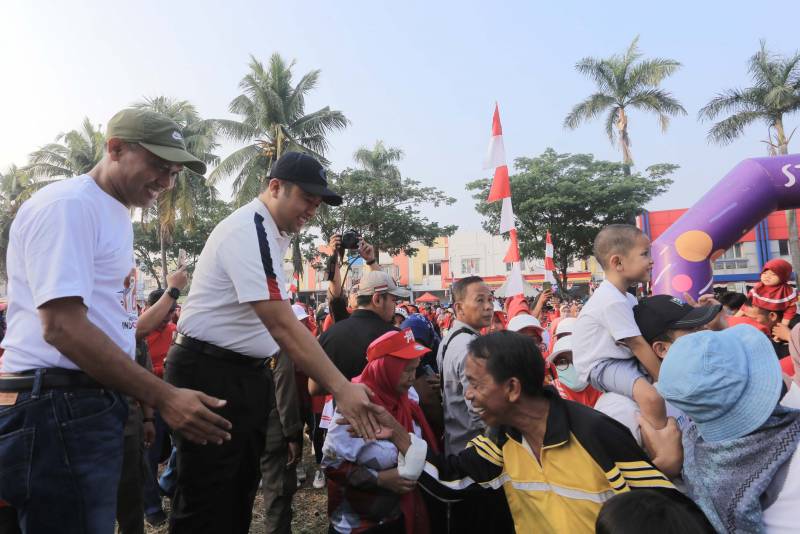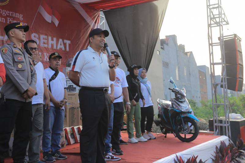 Sabtu pagi, (05/08), Wali Kota Tangerang, Arief R Wismansyah, hadir melepas sekaligus menyapa para peserta gerak jalan santai menyambut HUT Kemerdekaan RI yang mengambil titik start di Perumahan Buana Gardenia, Kecamatan Pinang.