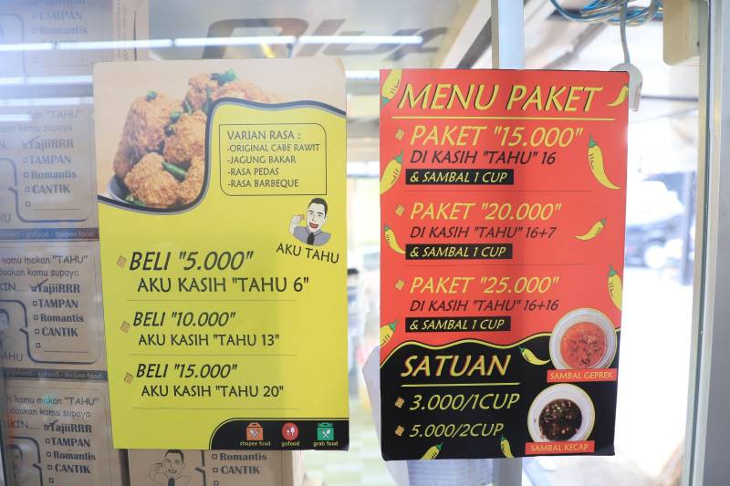 Aku Tahu bisa didapatkan dengan harga mulai dari Rp 5 ribu hingga Rp 15 ribu saja. Ada empat varian rasa Aku Tahu yang dapat dicicipi, yaitu original cabe rawit, pedas, jagung bakar, dan barbeque.