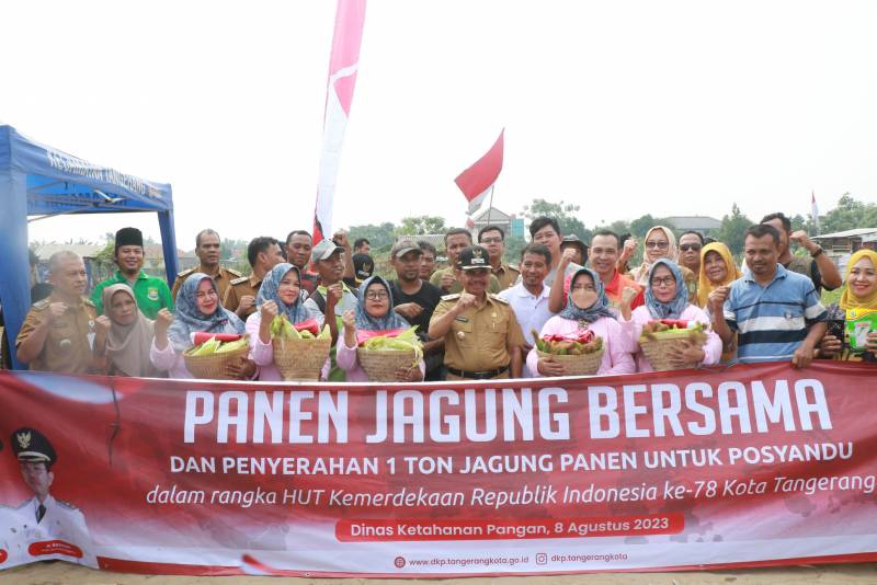 Pemerintah Kota (Pemkot) Tangerang melalui Dinas Ketahanan Pangan (DKP) Kota Tangerang melakukan panen bersama Kelompok Tani Jantan (Jagung Ketan) DKP Kota Tangerang di lahan garapan wilayah Kelurahan Cikokol, Kecamatan Tangerang, Selasa (8/8).