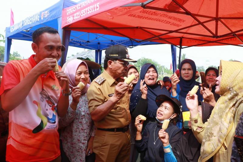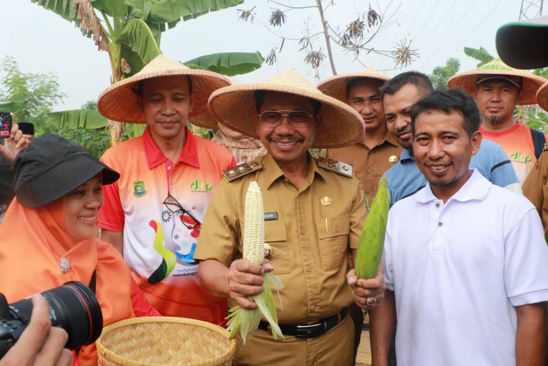 Bersama para petani, Wakil Wali Kota Tangerang, H. Sachrudin, didampingi Kepala Dinas DKP Kota Tangerang, Muhdorun, dan Asisten Perekonomian dan Pembangunan Kota Tangerang, Yetty Rohaeti, ikut turun ke lahan memanen jagung yang sudah siap panen sambil bercengkrama dengan para petani perintis di wilayah tersebut.