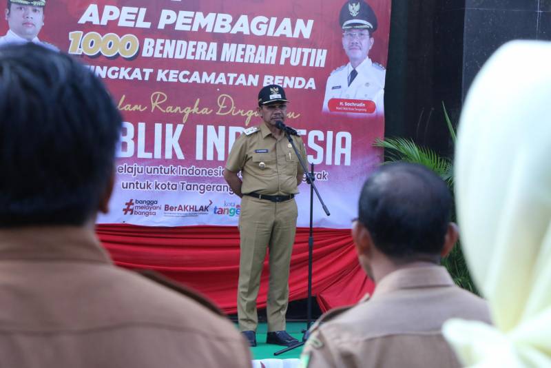 Hal ini disampaikan oleh Sachrudin, saat memimpin apel bersama perangkat wilayah Kecamatan Benda dan masyarakat sekaligus pembagian 1.000 Bendera Merah Putih kepada para perwakilan dari 40 RW se-Kecamatan Benda bertempat di pelataran Masjid Agung Al-Huda, Benda, Kota Tangerang, Selasa (8/8).