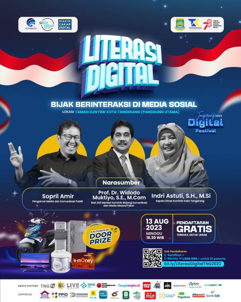 Bersama Kementerian Kominfo, juga akan digelar Literasi Digital pada 13 Agustus dengan tema Bijak Berinteraksi di Media Sosial menghadirkan narasumber Sopril Amir seorang Pengamat Media dan Komunikasi Publik, Widodo Muktiyo seorang Staf Ahli Menteri Kominfo Bidang Komunikasi dan Media Massa atau Pakar serta Indri Astuti selaku Kepala Diskominfo Kota Tangerang.