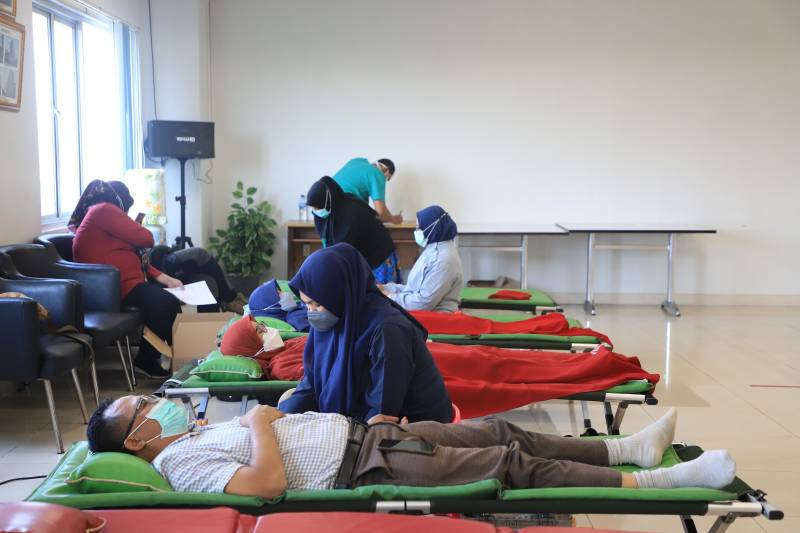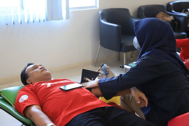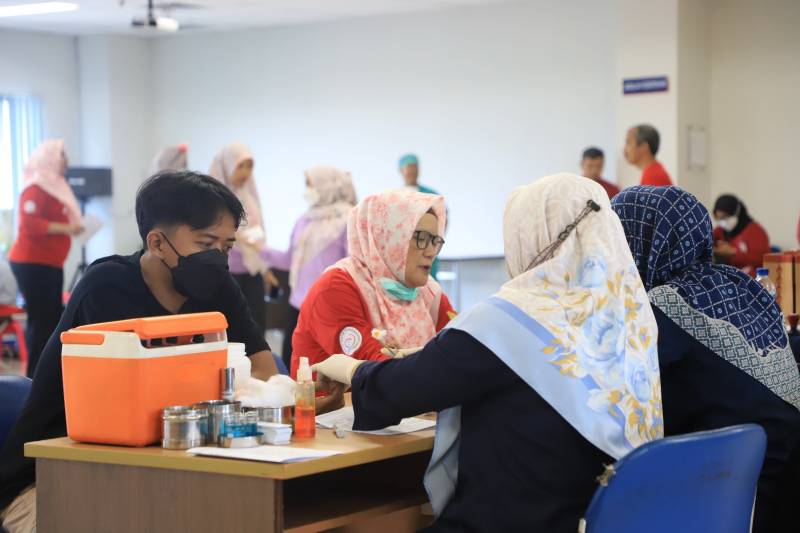 Menyambut Hari Ulang Tahun (HUT) Ke-78 Republik Indonesia, Rumah Sakit Umum Daerah (RSUD) Kota Tangerang menggelar donor darah. Kegiatan donor darah dilaksanakan di Aula RSUD Kota Tangerang, Rabu (16/08/23). Tak hanya untuk masyarakat umum, donor darah ini juga diikuti oleh seluruh pegawai RSUD Kota Tangerang.