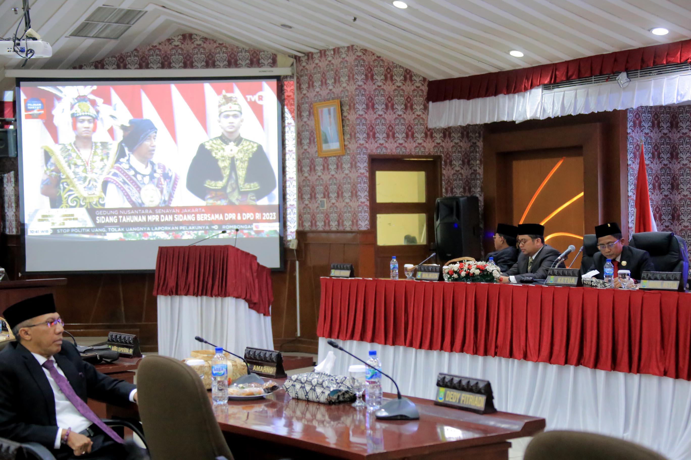 Wali Kota Tangerang, Arief R. Wismansyah, didampingi wakilnya, H. Sachrudin, hadir dalam Rapat Paripurna DPRD Kota Tangerang dalam Rangka Nonton Bareng (Nobar) sekaligus Mendengarkan Pidato Kenegaraan Presiden Republik Indonesia Pada Peringatan HUT Ke-78 Kemerdekaan Republik Indonesia Tahun 2023 yang diselenggarakan di Ruang Rapat Paripurna DPRD Kota Tangerang, Rabu, (16/08).