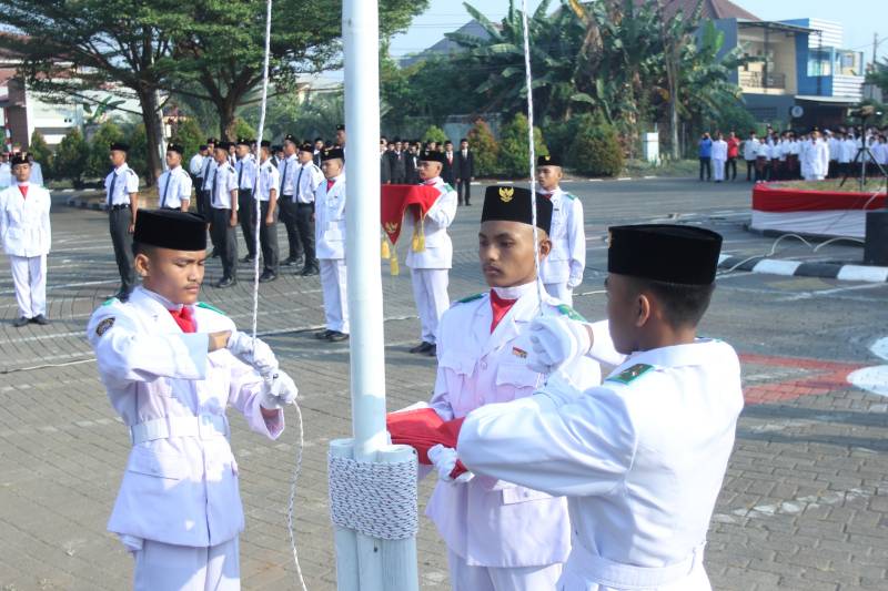Ratusan warga Taman Royal 2, RW16 Kelurahan Poris Plawad Indah, Kecamatan Cipondoh, Kota Tangerang melaksanakan upacara kemerdekaan Republik Indonesia bersama dengan para santri dan santriwati Pondok Pesantren Al Azhar Ummusuanah Cipondoh. Upacara dilaksanakan di Lapangan Taman Royal 2, Kamis (17/08/23).