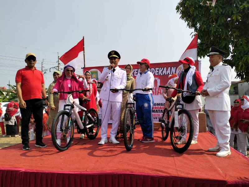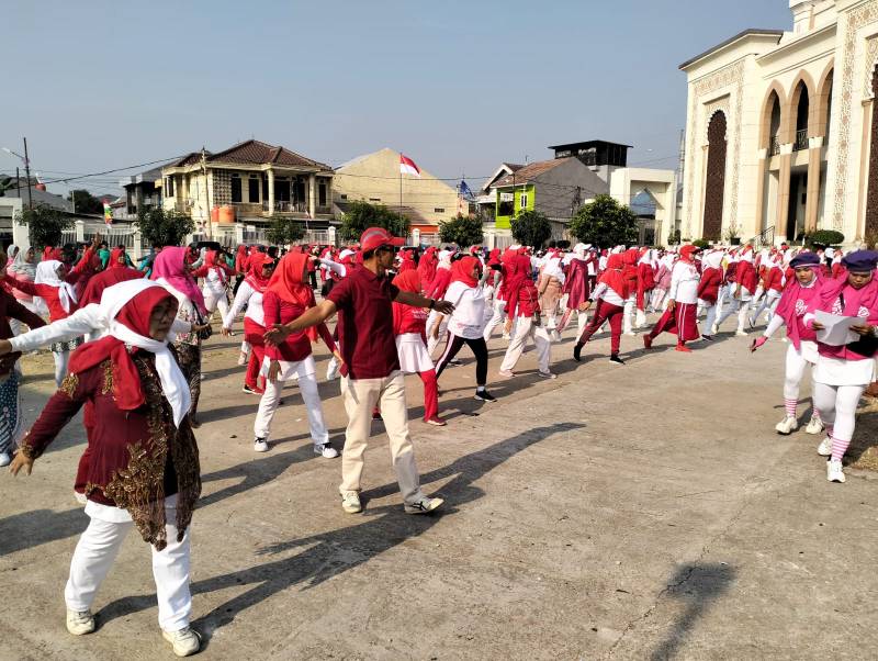 Pasca menyelenggarakan Upacara 17 Agustus, 780 lansia si Kelurahan Tanah Tinggi, Kecamatan Tangerang memeriahkan kemerdekaan dengan mengikuti lomba senam kreasi lansia, di Halaman Masjid Al Muhajirin, Kamis (17/8/23) pagi.