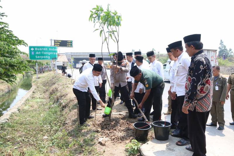 Menyikapi kondisi udara disejumlah wilayah yang tengah memburuk. Kecamatan Benda bersama tiga pilar berkolaborasi menggencarkan gerakan penghijauan untuk mengurangi polusi udara. Kali ini, melakukan penanaman puluhan pohon disejumlah ruas jalan atau lahan di Kecamatan Benda, Kamis (24/8/23).