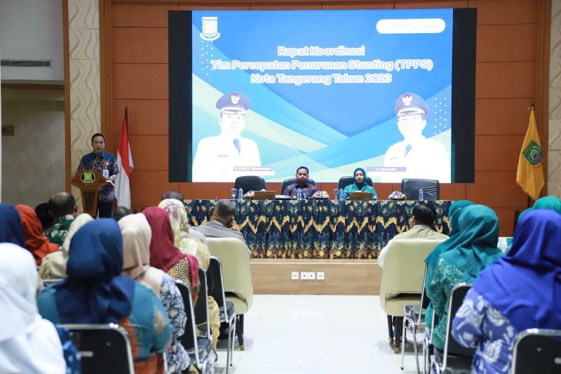 Pemerintah Kota (Pemkot) Tangerang melalui DP3AP2KB menggelar Rapat Koordinasi Tim Percepatan Penurunan Stunting (TPPS) guna membahas kembali terkait strategi dalam menekan angka stunting di Kota Tangerang, bertempat di Ruang Al-Amanah, Pusat Pemerintahan Lantai 5, Rabu (21/6/2023). Kegiatan ini dihadiri 411 orang dengan mengundang beberapa OPD terkait, Forkopimda, Ikatan Bidan Indonesia (IBI) Kota Tangerang, organisasi perempuan, Puskesmas, HIMPAUD, serta kader dan lapisan masyarakat yang tergabung dalam anggota TPPS Kota Tangerang.