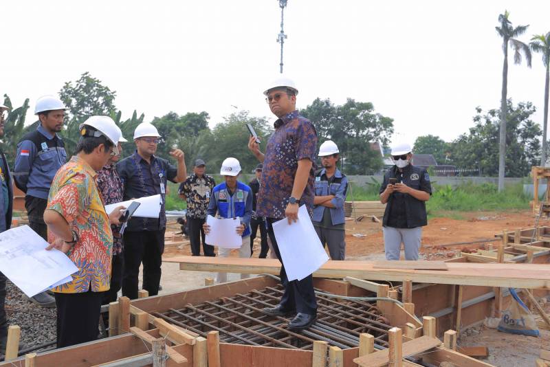 Wali Kota Tangerang, Arief R Wismansyah didampingi kepala Dinas Perumahan dan Permukiman Kota Tangerang, Sugiharto Achmad Bagdja, kembali meninjau proses pembangunan Sport Center Kota Tangerang yang berlokasi di Jalan Moh. Toha Kelurahan Nambo Jaya Kecamatan Karawaci, Kamis (31/8).