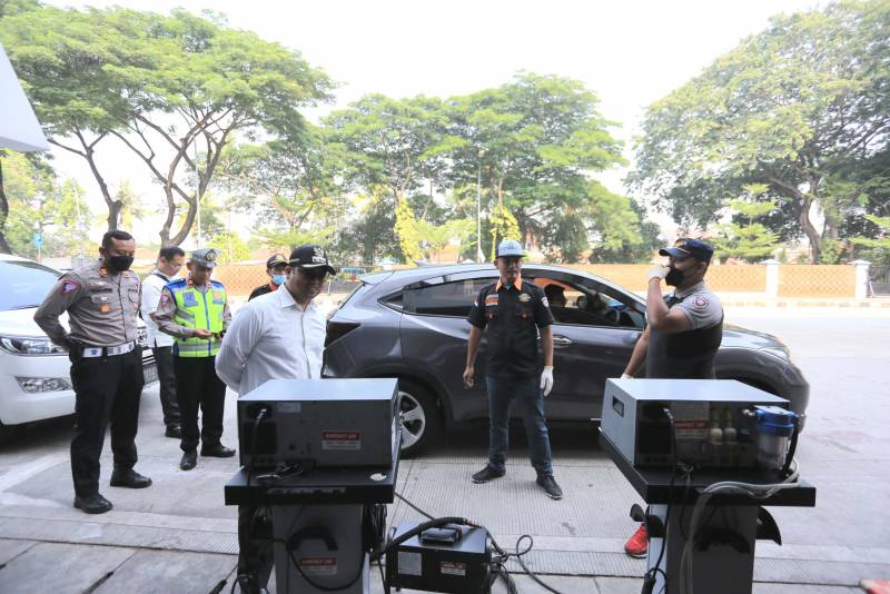 Pemerintah Kota Tangerang melalui Dinas Perhubungan Kota Tangerang dan Polres Metro Tangerang Kota menggelar Uji Emisi Gratis bagi kendaraan pribadi sebagai salah satu upaya Pemerintah Kota dalam menjaga kualitas udara di Kota Tangerang.