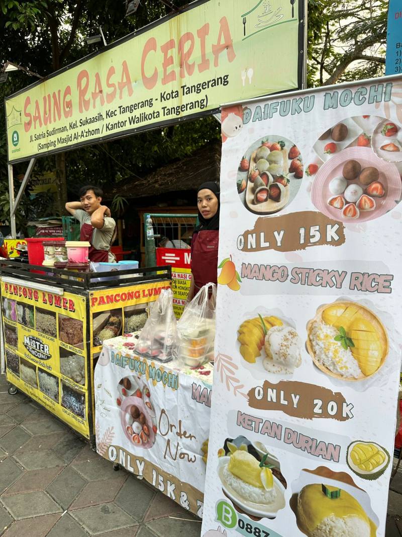 “Pertama kali saya dagang di Perumahan Taman Royal, Poris Plawad Utara, Cipondoh, Kota Tangerang. Ini merupakan usaha pertama saya bersama dengan istri saya, alhamdulillah dari tahun 2021 usaha lancar dan tidak sepi peminat. Ditambah kita pindah ke depan Masjid Al-Azhom yang sekaligus dekat dekat Taman Elektrik, jadi rame terus,” jelas Marcello.