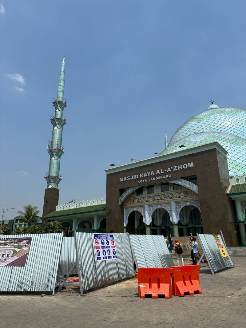 “Pembangunan tersebut nantinya akan difungsikan jika ada acara besar yang mengharuskan jamaah berkumpul di halaman Masjid Al-A’zhom mengindari adanya hujan dan panas kepada jamaah. Dengan harapan jamaah akan merasa nyaman jika datang ke masjid. Selain itu, bangunan tersebut dapat menjadikan suatu daya tarik dan wisata religi para jamaah,” jelas Chaerudin.