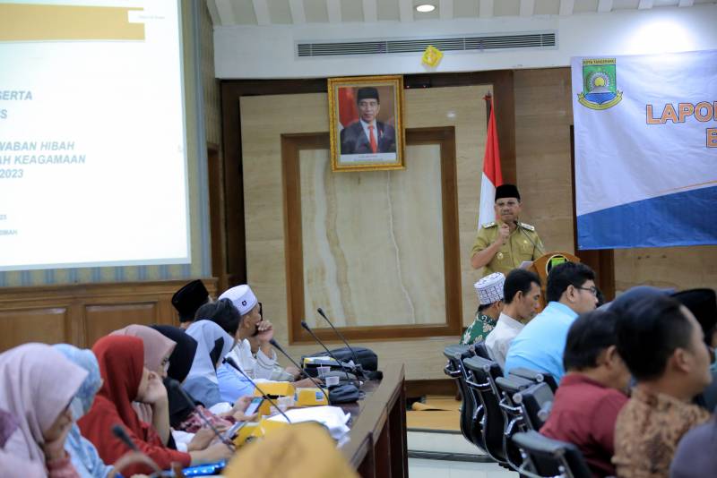 Wakil Wali Kota Tangerang, Sachrudin, membuka kegiatan Bimbingan Teknis Laporan Pertanggungjawaban Hibah Bagi Lembaga Penerima Hibah Keagamaan Tahun Anggaran 2023 yang diikuti oleh 146 peserta perwakilan dari organisasi penerima hibah.