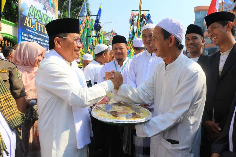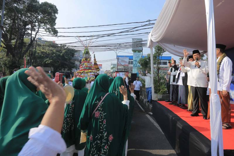 Wali Kota Tangerang, Arief R Wismansyah, hadir membuka sekaligus melepas rombongan peserta "Ngarak Perahu Maulid" yang diikuti oleh pawai gunungan masyarakat dari 13 Kecamatan di Kota Tangerang.