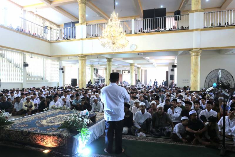 "Masih dalam momentum peringatan Maulid Nabi Muhammad SAW, saya mengajak bapak, ibu semua untuk terus meneladani sifat-sifat rasul yakni sidik, amanah, fathonah, tablig, juga sifat-sifat kedermawanan Rasulullah." tutur Arief, di hadapan para jamaah, Minggu, (01/10).