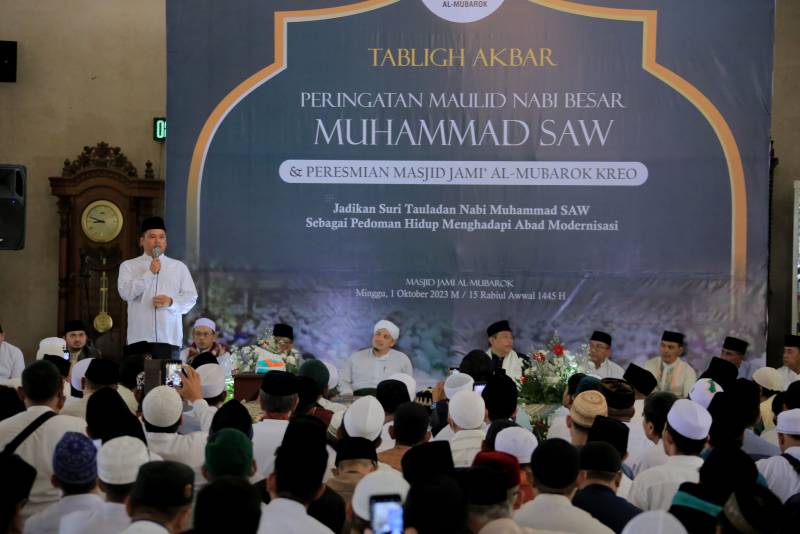 Di momen Peringatan Maulid Nabi sekaligus peresmian Masjid Jami' Al Mubarok Kreo, Arief, mengajak para jemaah dan juga seluruh masyarakat agar terus dapat meneladani sifat-sifat Rasulullah dengan terus bergotong royong dan saling berbagi untuk kemaslahatan umat.