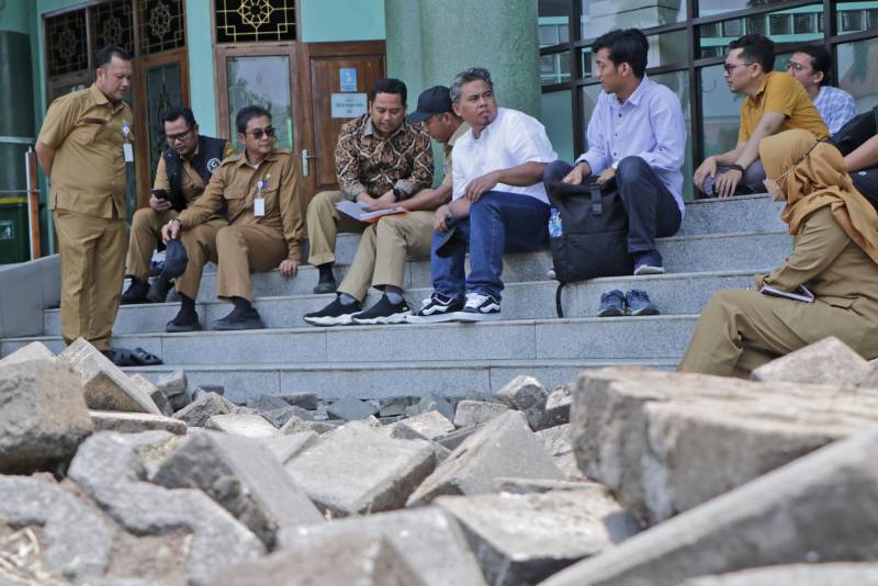 "Tolong hal-hal kecil juga diperhatikan, walaupun memang sedang fokus karena mengejar pembangunan tetapi tidak boleh lupa bahwa aktivitas masyarakat terutama jemaah yang beribadah di masjid ini masih terus berjalan," ucap Arief, saat meninjau halaman masjid yang nantinya akan menjadi lokasi dibangunnya empat payung besar yang terinspirasi dari Masjid Nabawi tersebut.