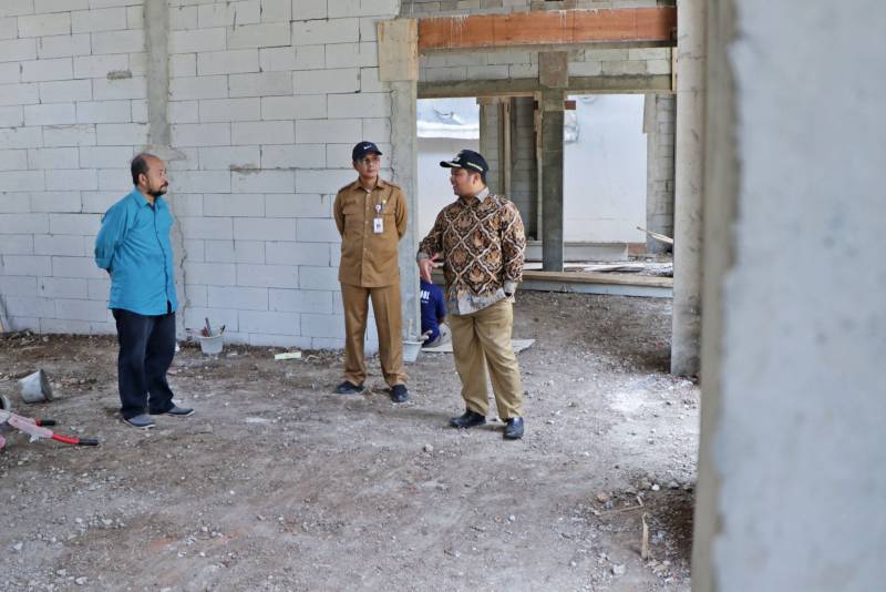 Tak lupa, Arief, juga memonitoring pembangunan di bagian belakang kawasan Masjid Raya Al-A'zhom tepatnya pembangunan Graha Santri 2210 yang juga masih terus berjalan.