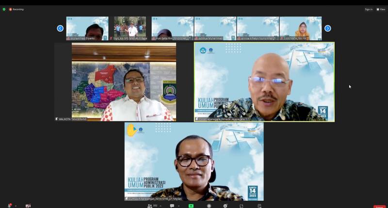 Wali Kota Tangerang, H. Arief R. Wismansyah, berkesempatan memberikan kuliah umum kepada ratusan Mahasiswa Magister Administrasi Publik se-Indonesia yang diselenggarakan oleh Universitas Terbuka secara daring, Sabtu (14/10).