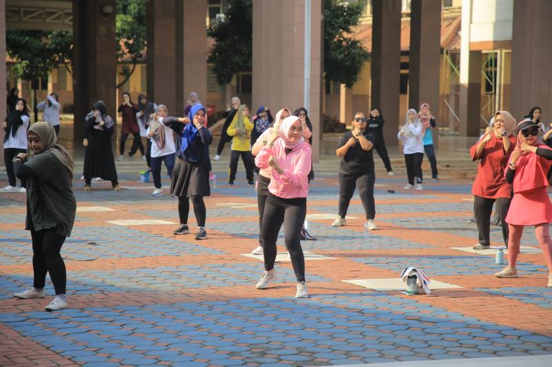 Tidak main-main, puluhan pegawai dari berbagai Organisasi Perangkat Daerah (OPD) mengikuti kegiatan yang dipandu langsung Coach Fertin dari Celebrity Fitness. Dimulai pukul 07.00 wib hingga selesai, dan diawali dengan timbang berat badan hingga cek kadar lemak tubuh.