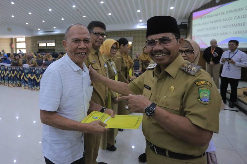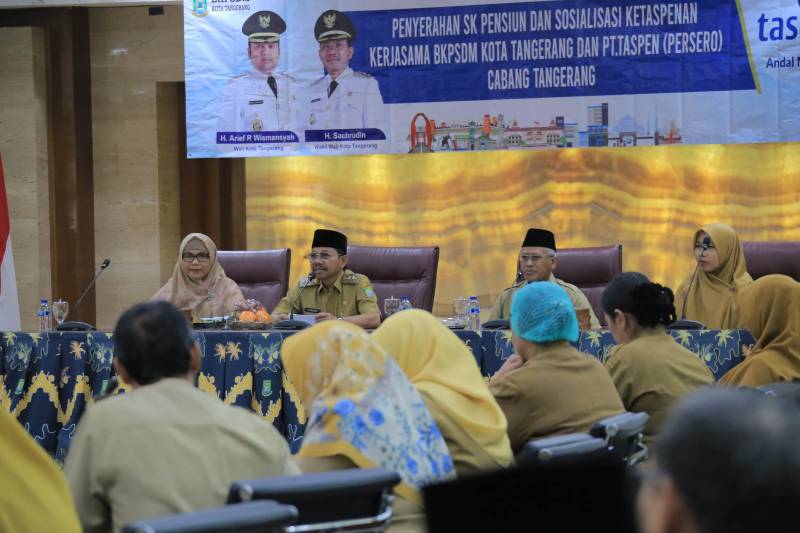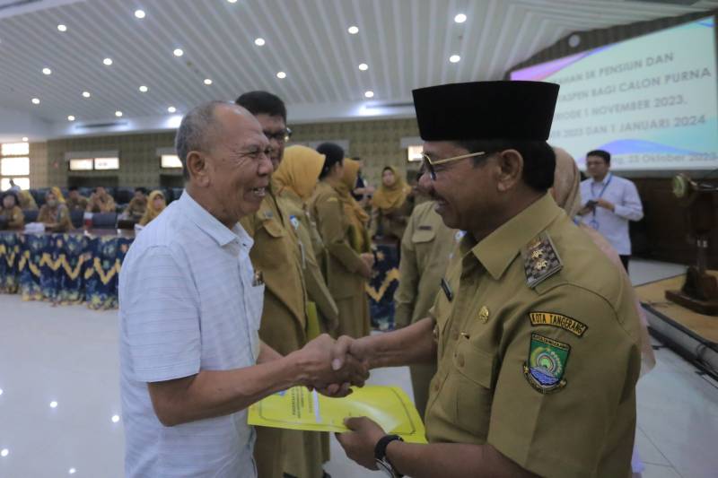 Wakil Wali Kota Tangerang, Sachrudin, menyerahkan Surat Keputusan (SK) pensiun kepada para calon purna bakti yang memasuki batas usia pensiun, periode November dan Desember 2023, hingga Januari 2024.