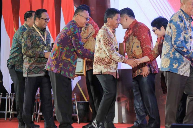 Wakil Wali Kota Tangerang, Sachrudin, menerima langsung penghargaan yang diberikan oleh Kepala LKPP, Hendrar Prihadi, dalam acara Anugerah Pengadaan tahun 2023 dan Rakornas Pengadaan LKPP 2023.