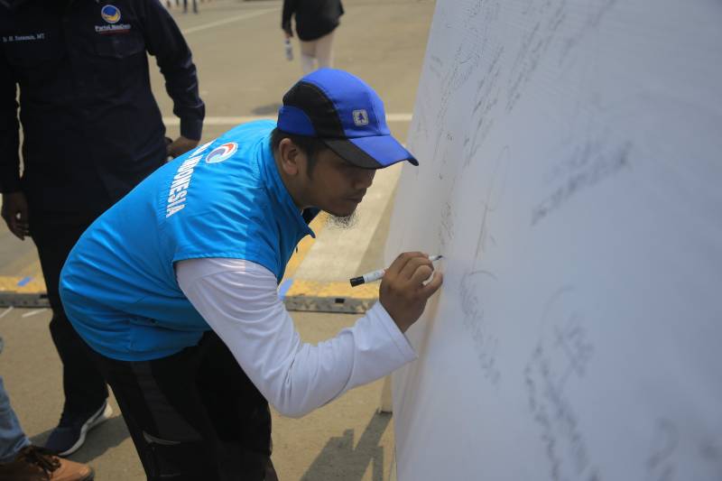 "Hari ini memang Kirab Pemilu bersamaan dengan Kirab Santri yang diselenggarakan oleh Pemkot Tangerang. Ini tentunya menjadi bukti bahwa Pemkot Tangerang mendukung untuk menggaungkan sosialisasi Pemilu 2024. Kirab Pemilu dilaksanakan secara nasional dari Sabang hingga Merauke dan akan berakhir di titik terakhir KPU Pusat Republik Indonesia," ungkap Ketua KPU Kota Tangerang, Ahmad Syailendra.