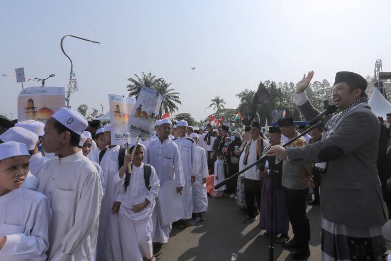 Wali kota juga mengajak kepada sekitar 15.000 santri yang hadir untuk mendoakan kebaikan bagi warga Palestina yang hingga saat ini masih dalam kondisi terjajah.