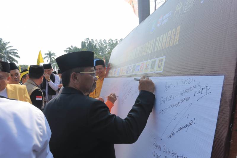 Arief, juga menyampaikan dengan deklarasi Pemilu damai, menjadi sebuah komitmen agar Pemilu 2024 di Kota Tangerang dapat berjalan dengan kondusif dan damai.