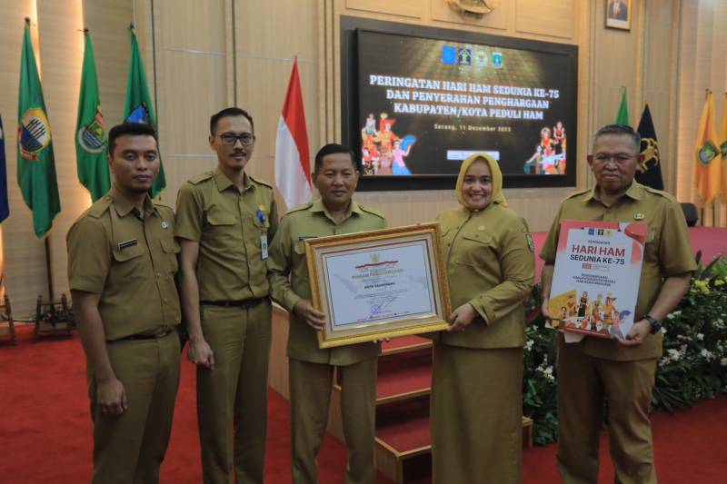 Penghargaan tersebut, diterima langsung oleh Sekretaris Daerah Kota Tangerang, yang diserahkan oleh Pj. Gubernur Banten didampingi Kepala Kantor Wilayah Kementerian Hukum dan HAM Banten, dalam acara puncak Peringatan Hari HAM ke-75 dengan tema "Harmoni dalam Keberagaman,” yang berlangsung di Pendopo Gubernur Banten, Serang, Senin (11/12).