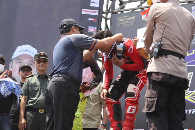 “Dari 15 kelas balap yang diikuti, kami sangat bangga ada beberapa rider dari Kota Tangerang yang berhasil meraih Juara 1, diantaranya Ibrahim Khoirulloh, pada kelas MX 85 CC, Deden KC, dari kelas Bebek Modif Pro, serta Rio Firmansyah, pada kelas Trail Standar 4T 155 CC Pemula, dan masih banyak lagi. Ini menjadi semangat baru bagi dunia otomotif di Kota Tangerang,” kata Ujang.
