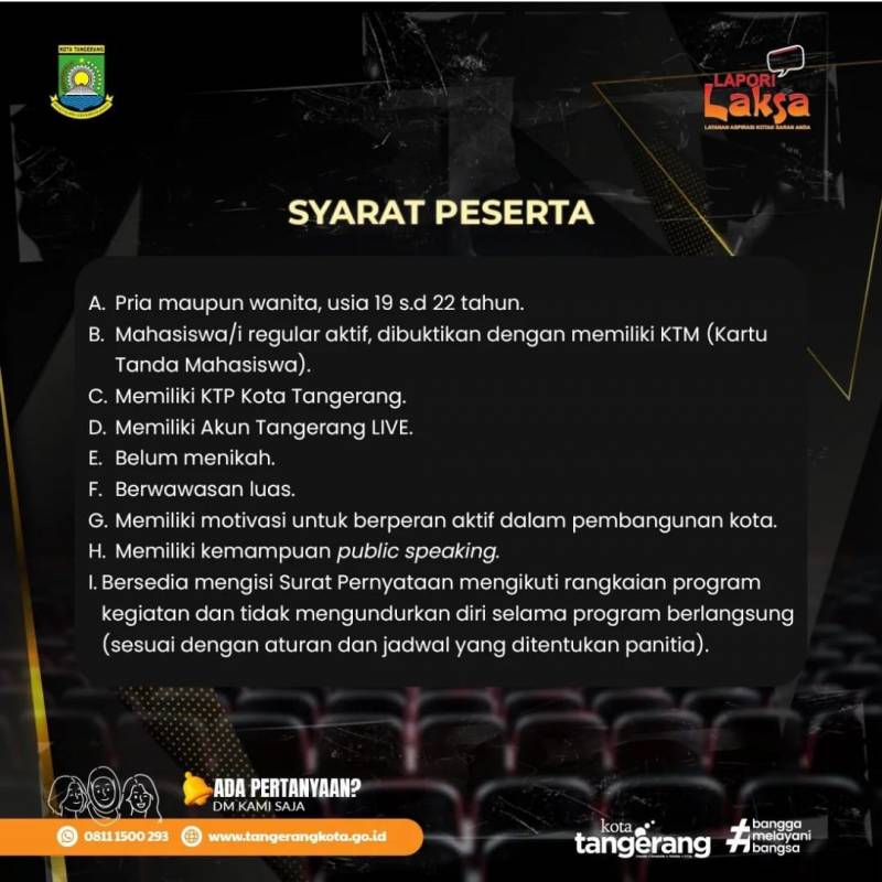 Berikut persyaratan mendaftar pemilihan Duta Aspirasi Publik Kota Tangerang;