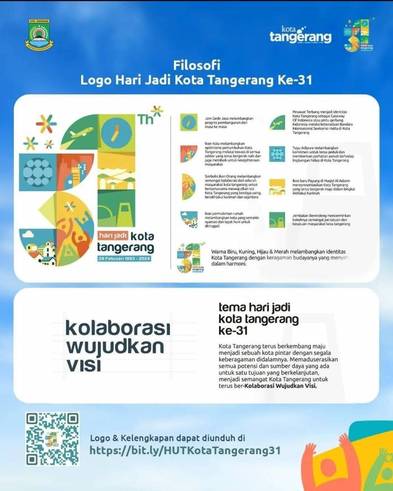 Pemerintah Kota (Pemkot) Tangerang pun mengeluarkan logo resmi untuk HUT ke-31 tahun yang pastinya memiliki arti dan makna dari gambar tersebut. Logo berbentuk 31 mengandung delapan unsur ikon Kota Tangerang. Dibalut dengan warna biru, kuning, hijau dan merah yang melambangkan identitas Kota Tangerang dengan keragaman budayanya yang menyatu dalam harmoni.