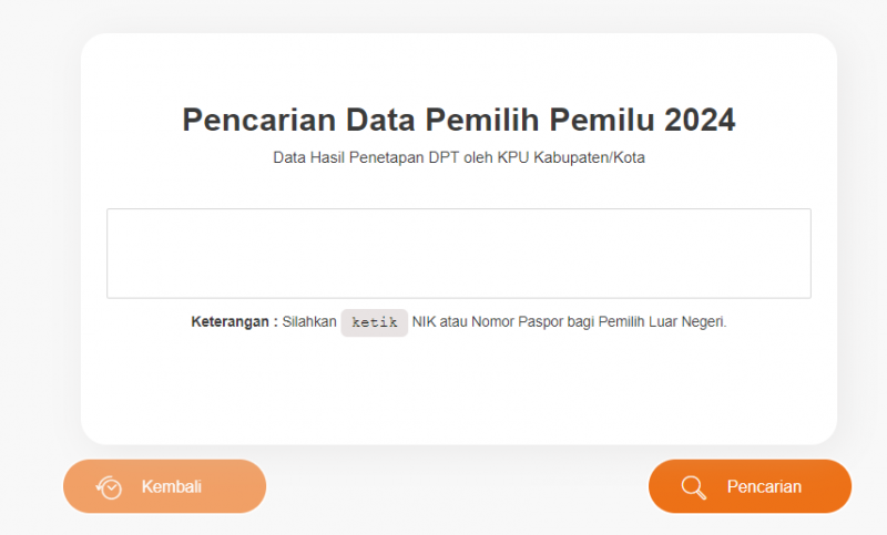 1. Kunjungi situs cekdptonline.kpu.go.id halaman akan memuat keterangan ‘Pencarian Data Pemilih Pemilu 2024’