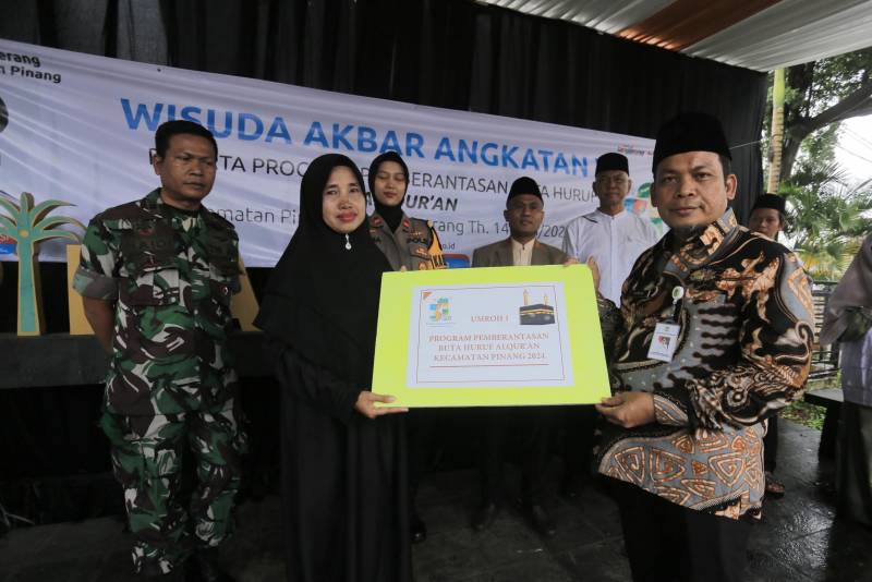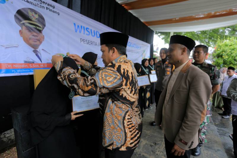 “Alhamdulillah, hari ini usaha keras dari para guru ngaji, Penyuluh Agama Kantor Urusan Agama di Kecamatan Pinang dalam membimbing para bapak, ibu, Lanjut Usia (Lansia) sudah membuahkan hasil, baik kita nikmati di dunia dan insya Allah diakhirat kelak. Mudah-mudahan amal jariyahnya terus berlanjut,” harapnya, dihadapan 250 wisudawan, 491 guru ngaji, perwakilan dari 11 kelurahan yang ada di Pinang.