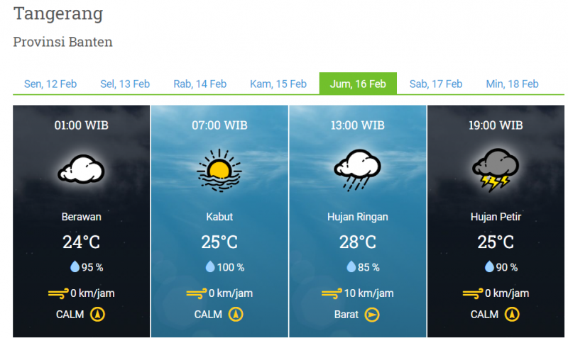Prakiraan Cuaca Kota Tangerang Sepekan