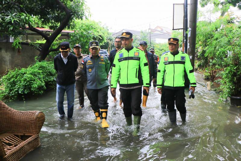 Penjabat (Pj) Wali Kota Tangerang, Dr. Nurdin, bersama dengan Kapolres Metro Tangerang Kota bergegas meninjau titik lokasi banjir yang juga sebagai lokasi pemungutan suara.