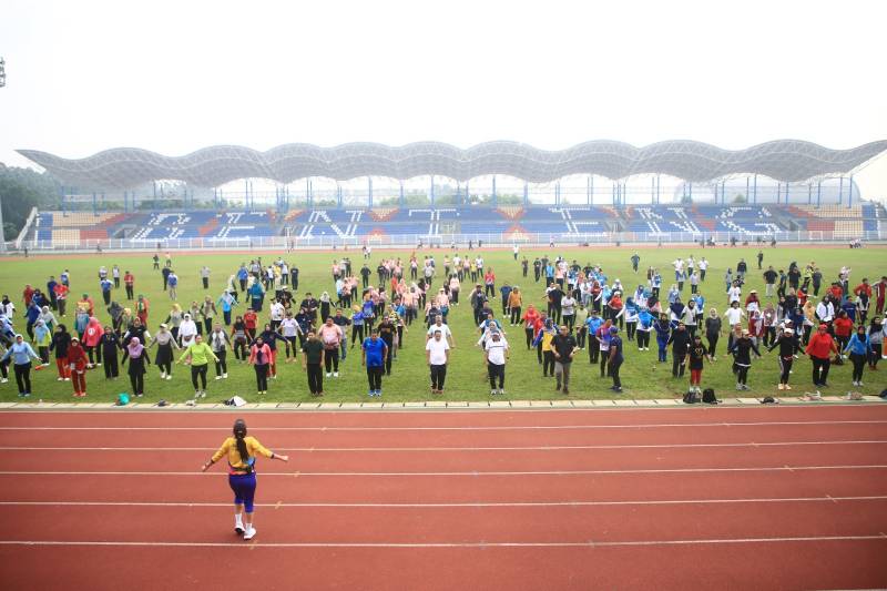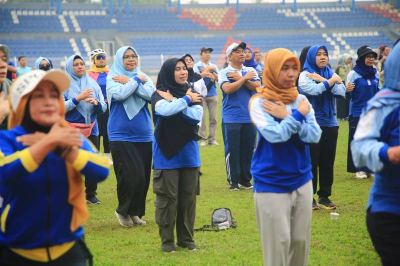 Dinas Pemuda dan Olahraga (Dispora) Kota Tangerang sukses menggelar senam sehat bersama masyarakat. Kegiatan ini diikuti Penjabat (Pj) Wali Kota Tangerang Nurdin, bersama seluruh kepala organisasi perangkat daerah (OPD). Terlihat masyarakat sangat antusias memadati Stadion Benteng Reborn, Jumat (16/2/2024).